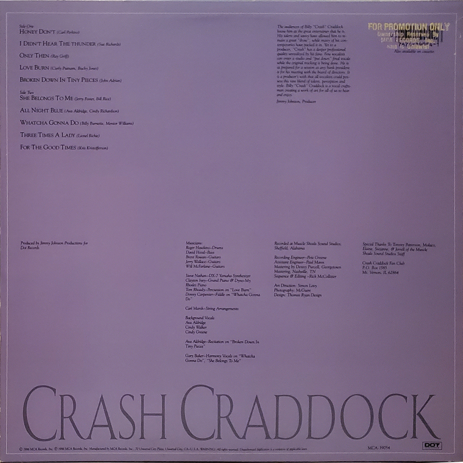 BILLY CRASH CRADDOCK Self Titled Vinyl RARE