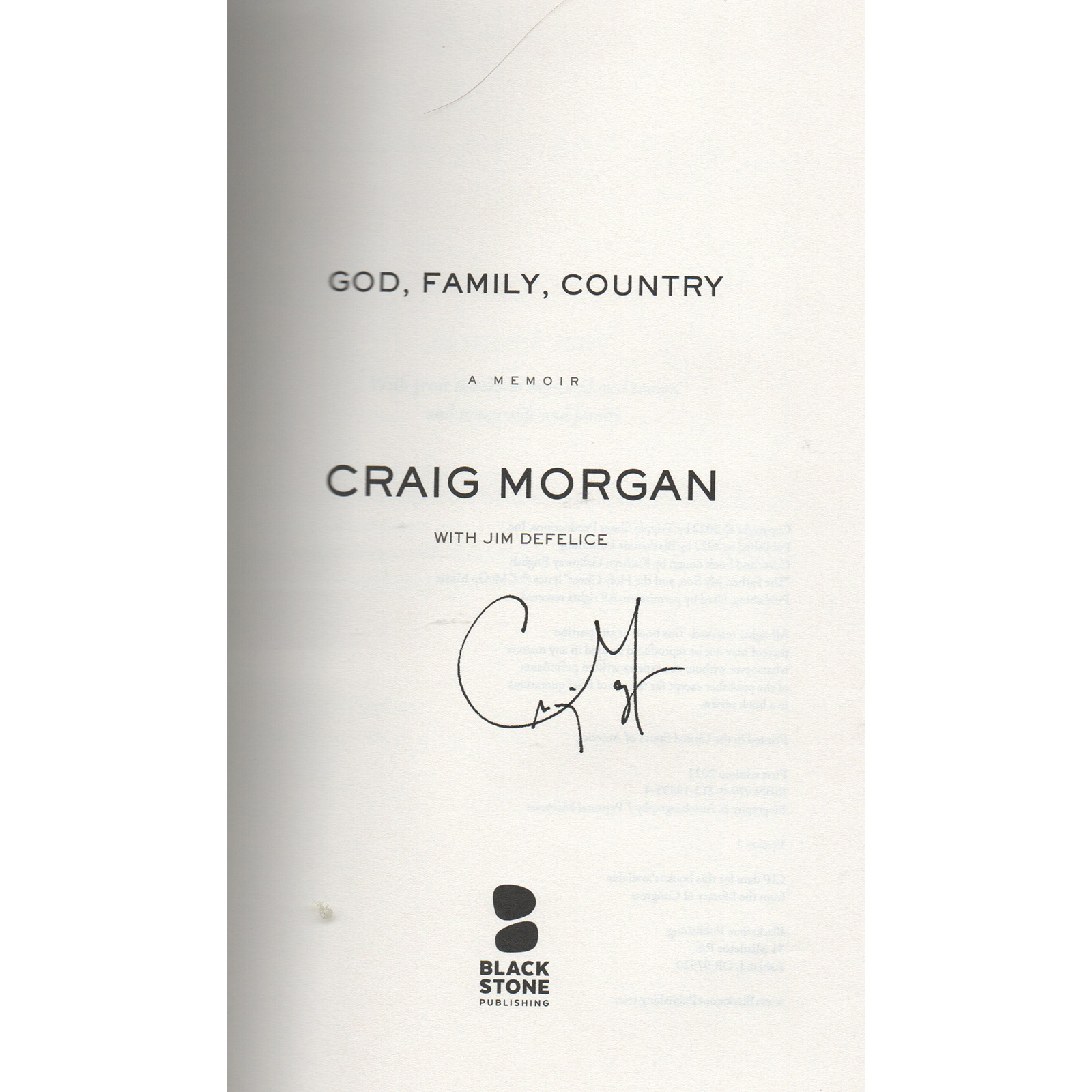 God, Family, Country A Memoir CRAIG MORGAN Book Hardcover Autographed