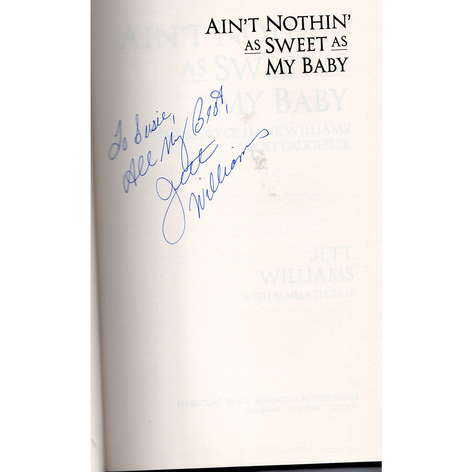Condition: The hardcover book and dustcover are in very good condition. The title page is signed by Jett Williams (to Susie)!