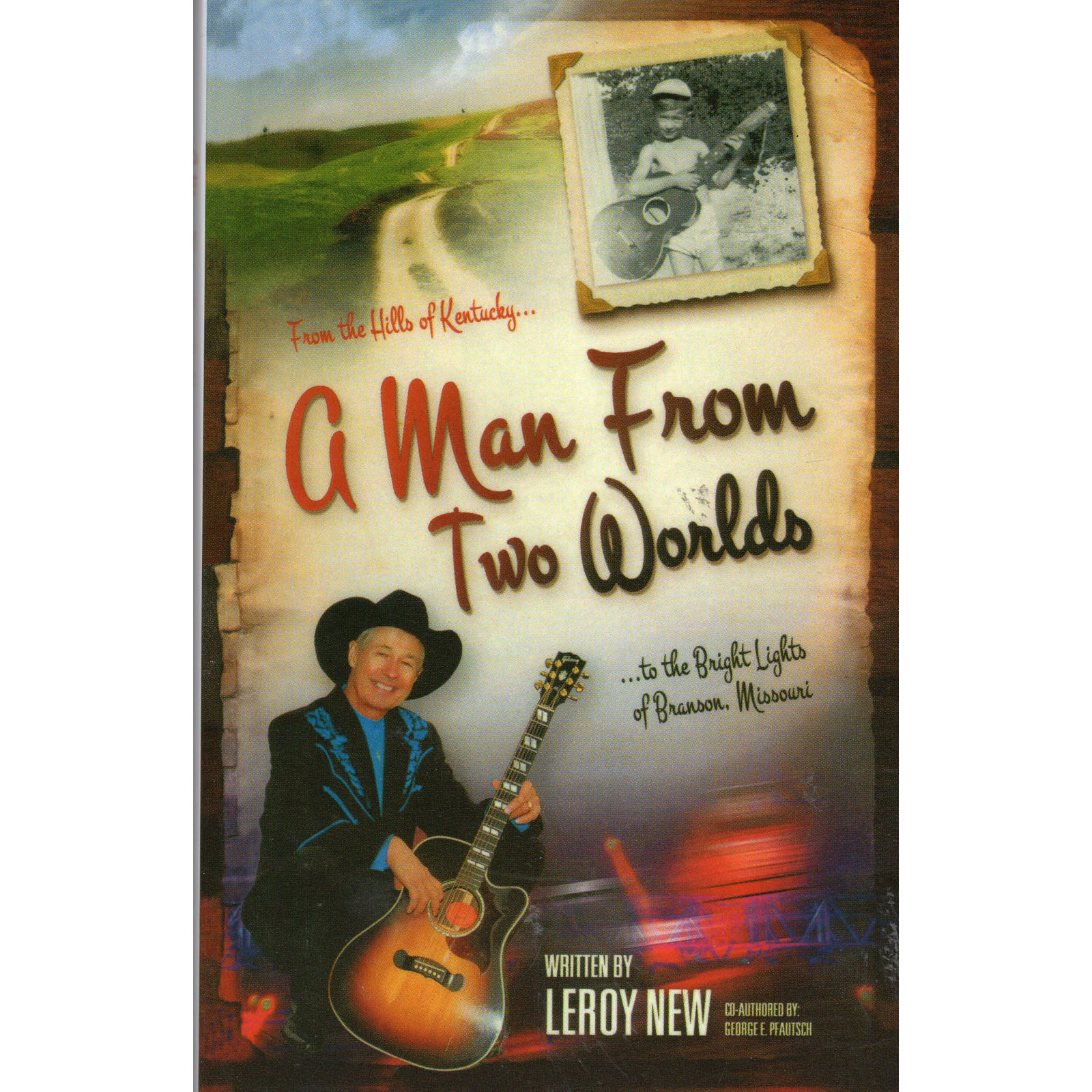 “Leroy New has lived the American Dream. He grew up in a small cabin in the hills of southern Kentucky, where he was raised by his grandparents. He attended a one room school house and often rode those four miles on horseback with his grandpa. Through dedication and hard work, he is today the ‘Guitar Wizard’ of Branson, Missouri. He was voted Branson’s guitarist of the year in 2010 and is a member of the Traditional Country Music Hall of Fame. Through it all he has maintained a warm, wholesome and genuine personality. It has been a joy to work with Leory on his story, ‘A Man From Two Worlds.’ – George E. Pfautsch (Author and Speaker)