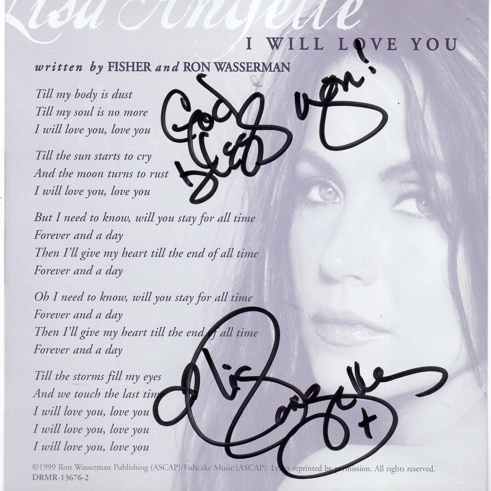 Condition: Both front and back inserts are in great condition as is the cd itself….there is a single page insert that has the lyrics of I Will Love You printed and has been signed by Angelle with a black sharpie as follows: God Bless You! Lisa Angelle