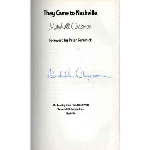 Marshall Chapman knows Nashville. A musician, songwriter, and author with nearly a dozen albums and a bestselling memoir under her belt, Chapman has lived and breathed Music City for over forty years. Her friendships with those who helped make Nashville one of the major forces in American music culture is unsurpassed. And in her new book, They Came to Nashville, the reader is invited to see Marshall Chapman as never before–as music journalist extraordinaire. In They Came to Nashville, Chapman records the personal stories of musicians shaping the modern history of music in Nashville, from the mouths of the musicians themselves. The trials, tribulations, and evolution of Music City are on display, as she sits down with influential figures like Kris Kristofferson, Emmylou Harris, and Miranda Lambert, and a dozen other top names, to record what brought each of them to Nashville and what inspired them to persevere. The book culminates in a hilarious and heroic attempt to find enough free time with Willie Nelson to get a proper interview. Instead, she’s brought along on his raucous 2008 tour and winds up onstage in Beaumont, Texas singing “Good-Hearted Woman” with Willie. They Came to Nashvillereveals the daily struggle facing newcomers to the music business, and the promise awaiting those willing to fight for the dream. Co-published with the Country Music Foundation Press