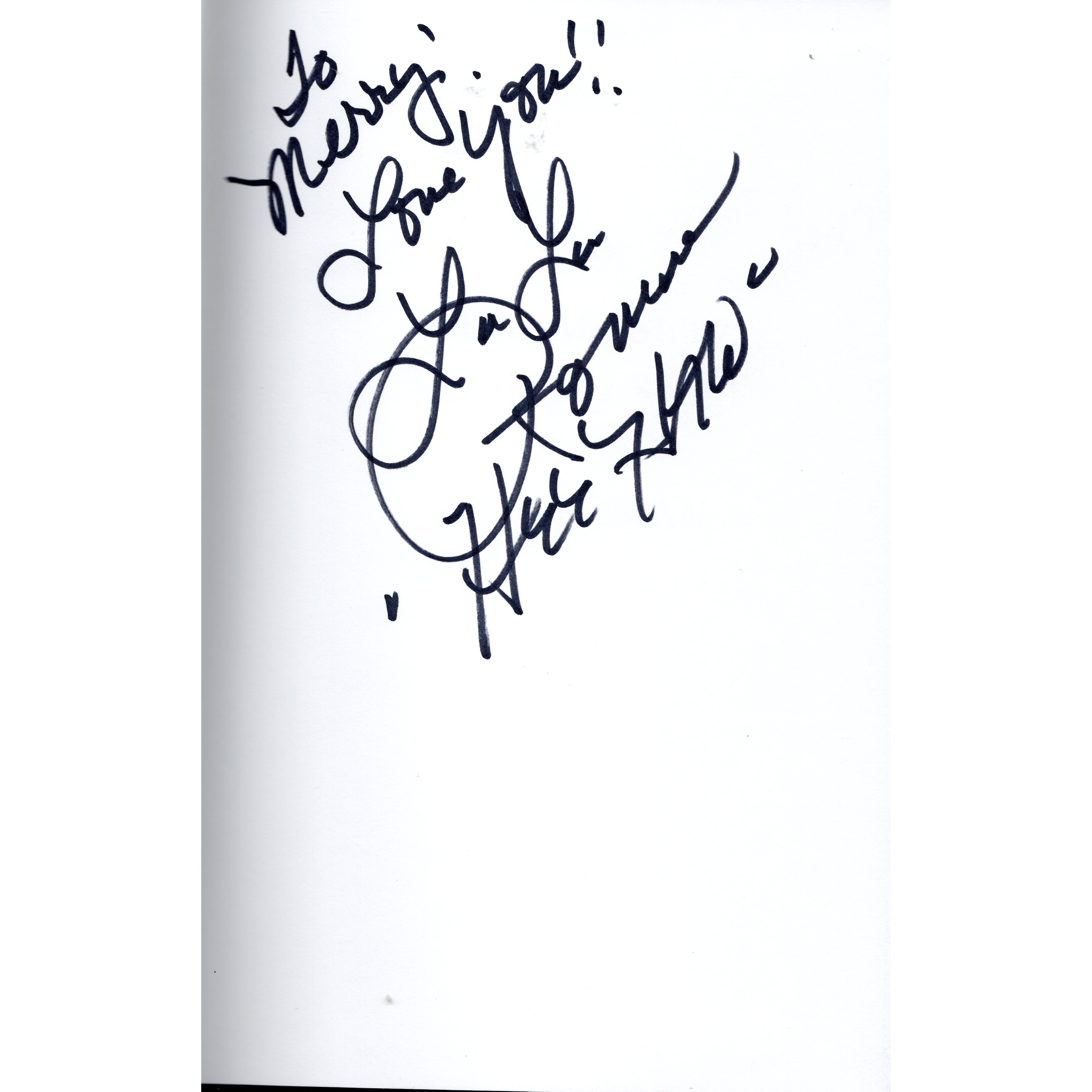 Condition: This hardcover book is in like new condition with the binding, pages and cover in excellent condition.  Front page has been signed by Lulu with black sharpie as follows: To Merry!  Love You!!  LuLu Roman “HEE HAW”